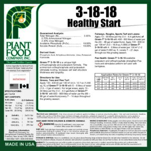 Green-T® Healthy Start XTRA 3-18-18 is a unique polyphosphate and potassium formula and excellent starter fertilizer that aides in root development and improves plant health in spring.