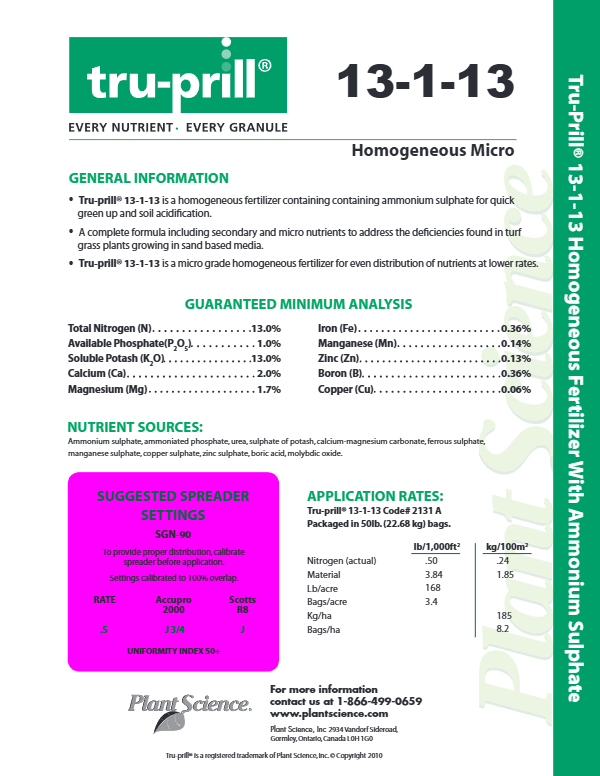 A complete formula including secondary and micronutrients to address the deficiencies found in turf grass plants growing in sand-based media. The micro grade homogeneous fertilizer allows for even distribution of nutrients at lower rates.